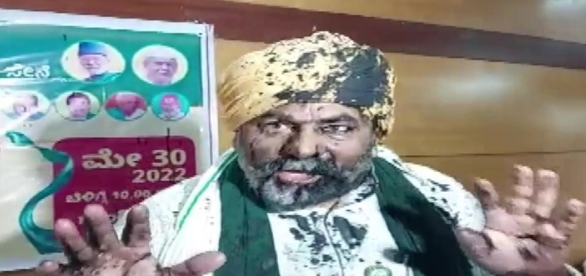Black ink was thrown at Rakesh Tikait in Bengaluru on Monday afternoon. The incident took place when the farmer leader Tikait was holding a press conference. The police have taken the accused into custody.